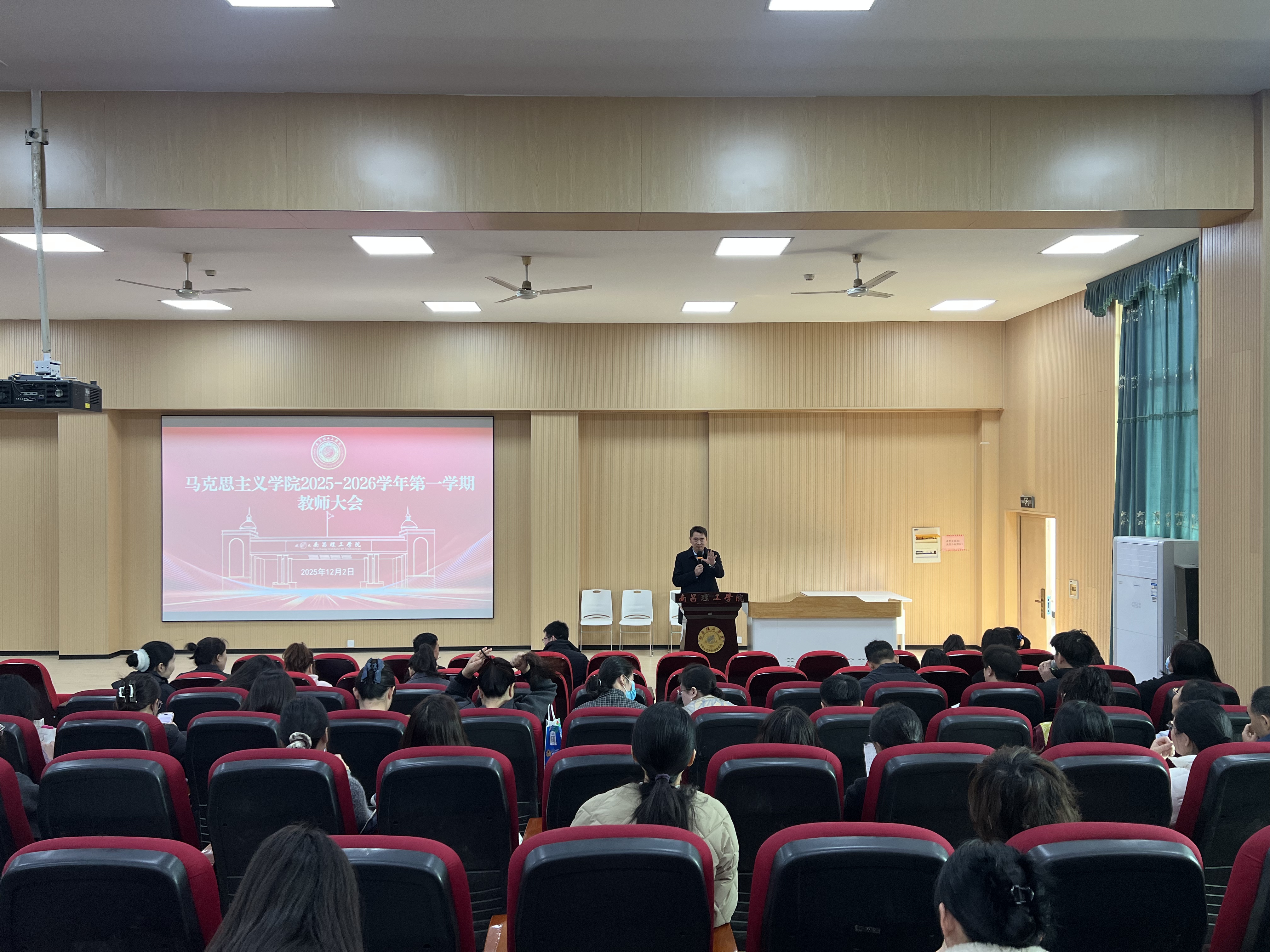 12月2日下午,马克思主义学院在E栋208教室召开2025-2026学年第一学期教师大会,围绕学期末重点任务进行部署推进。学院全体教师参加会议,会议由执行院长张进主持。